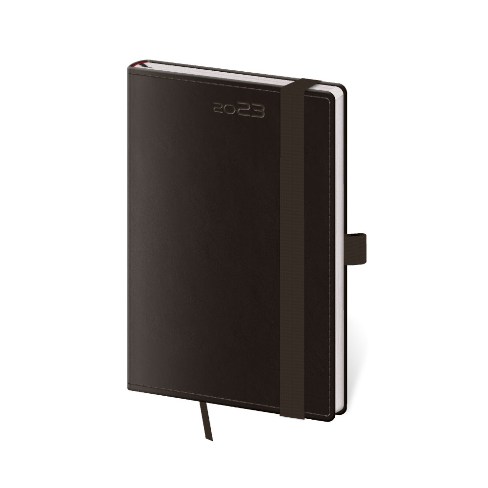 Rozmer: 90 x 140 mm Formát: vreckový Kalendárium: týždenné české/slovenské Počet strán: 128 Farba bloku: biela Väzba: V8 Poťahový materiál: matný zušľachtený papier bez štruktúry Obsahuje: osobné údaje, plánovač dovolenky (mesačný prehľad), plán