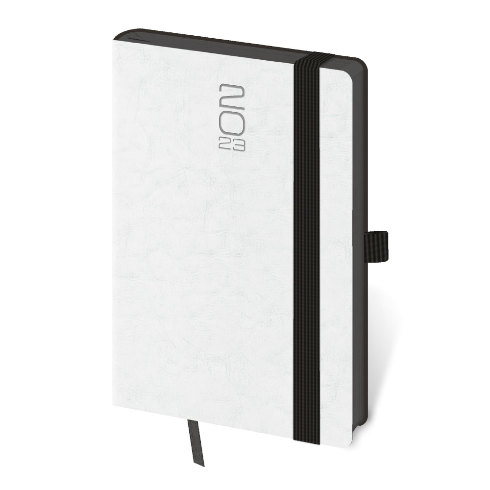 Týždenný vreckový diár 2023 Memory s gumičkou - biela