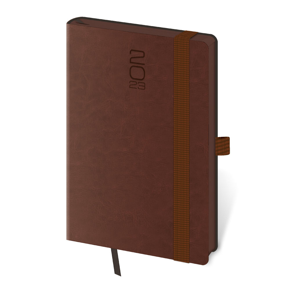 Týždenný vreckový diár 2023 Memory s gumičkou - tmavo hnedá