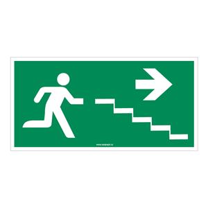Únikové schodiště vpravo dolů - bezpečnostní tabulka, plast 1 mm 200x100 mm |