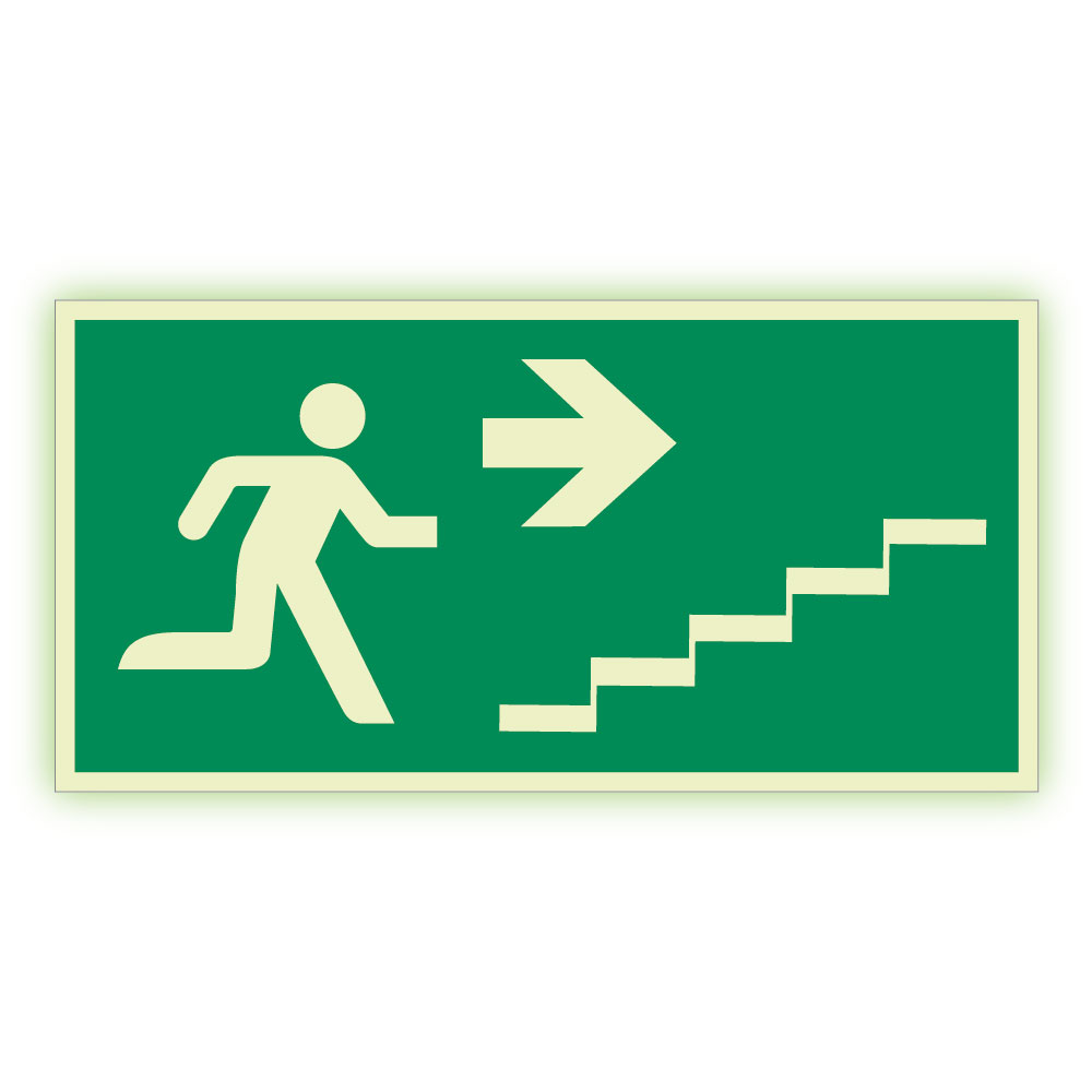Únikové schodiště vpravo nahoru - fotoluminiscenční tabulka, plast 2 mm 300x150 mm