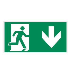 Únikový východ dole - bezpečnostná tabuľka, samolepka 400x200 mm |