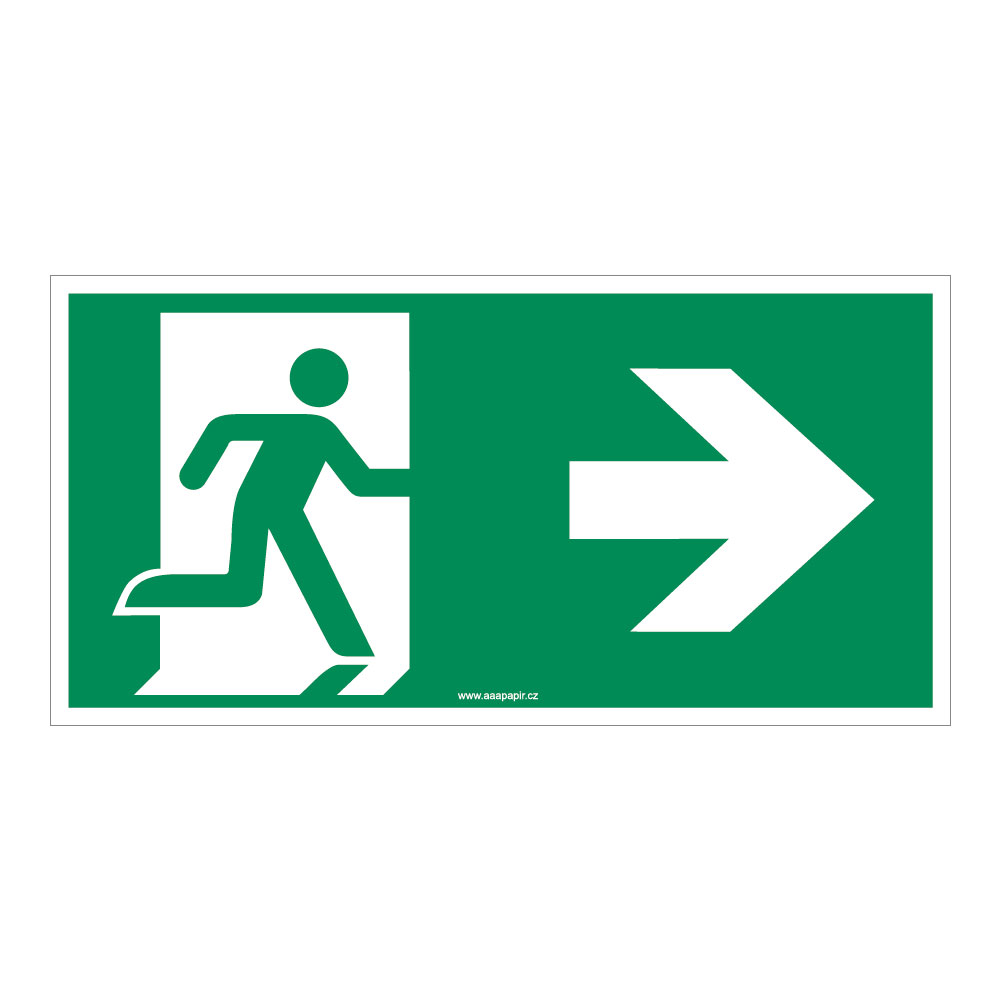 Únikový východ vpravo - bezpečnostní tabulka, samolepka 400x200 mm |
