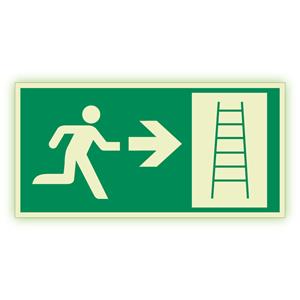 Únikový žebřík - směr vpravo - fotoluminiscenční tabulka, samolepka 300x150 mm