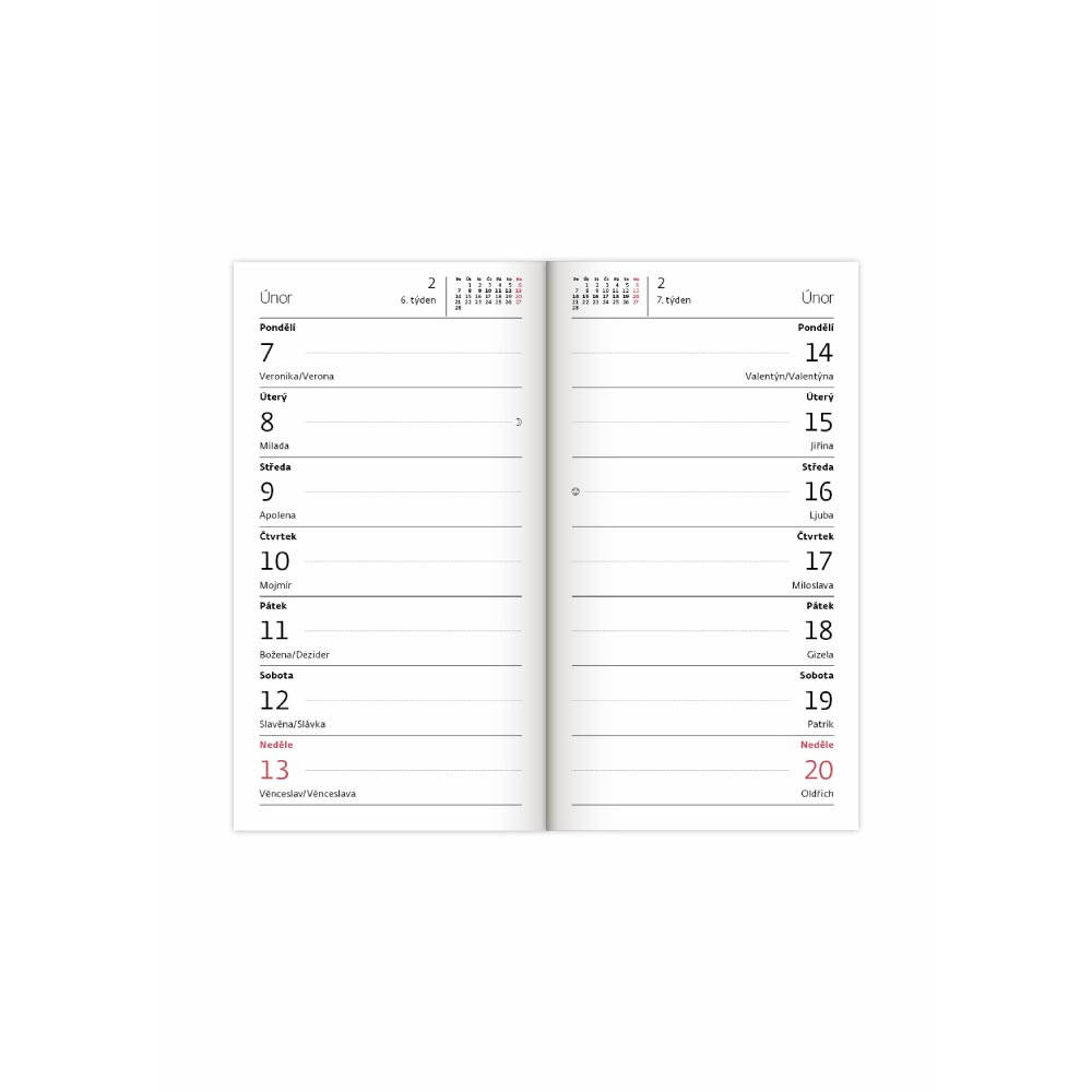 Rozmer: 8,5 x 15,4 cmKalendárium: česke dvojtýždňové mennéPočet strán: 80 + 4 stránPovrch: lamino