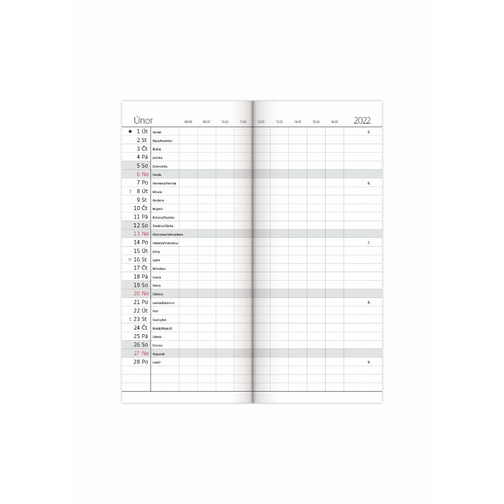 Rozmer: 7,7 x 17,8 cmKalendárium: české mesačné mennéPočet strán: 32 + 4 stránPovrch: Lamino