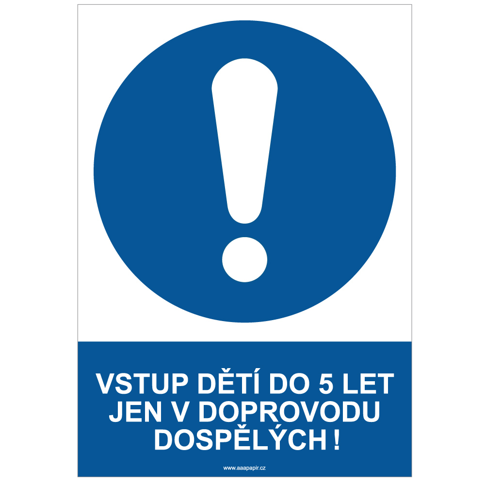 | VSTUP DĚTÍ DO 5 LET JEN V DOPROVODU DOSPĚLÝCH! - bezpečnostní tabulka, samolepka A4 | RBT-SA4-256 | Samolepka | A4 (cca 210x297) | 0.70 | 0.86 |