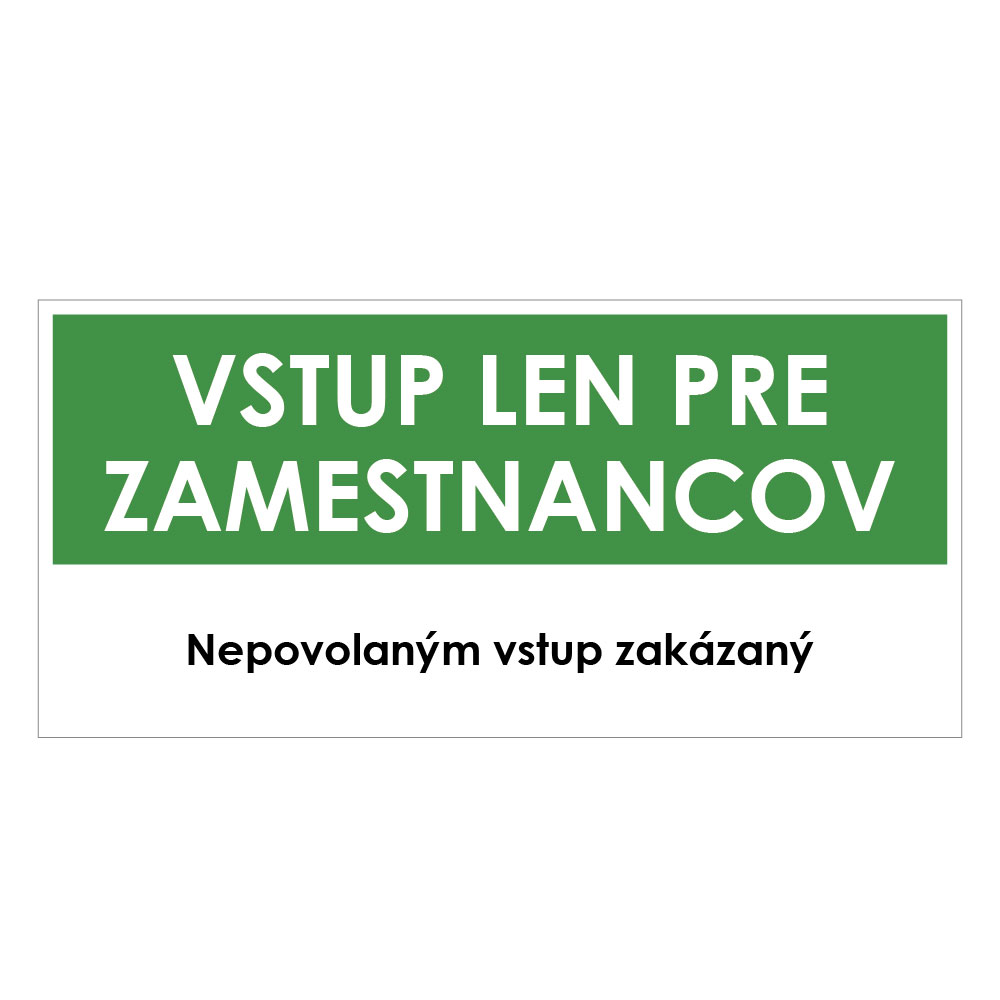 Vstup len pre zamestnancov, zelená, plast 1mm,190x90mm