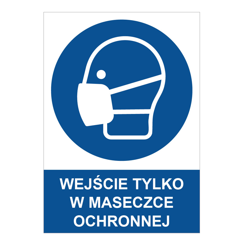WEJŚCIE TYLKO W MASECZCE OCHRONNEJ - znak BHP, 2 mm płyta PVC A4