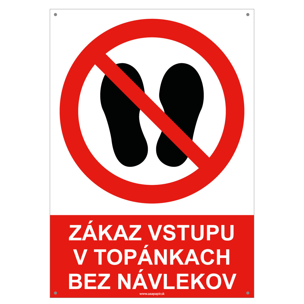 Zákaz vstupu v topánkach bez návlekov - bezpečnostná tabuľka s dierkami, plast A5, 2 mm