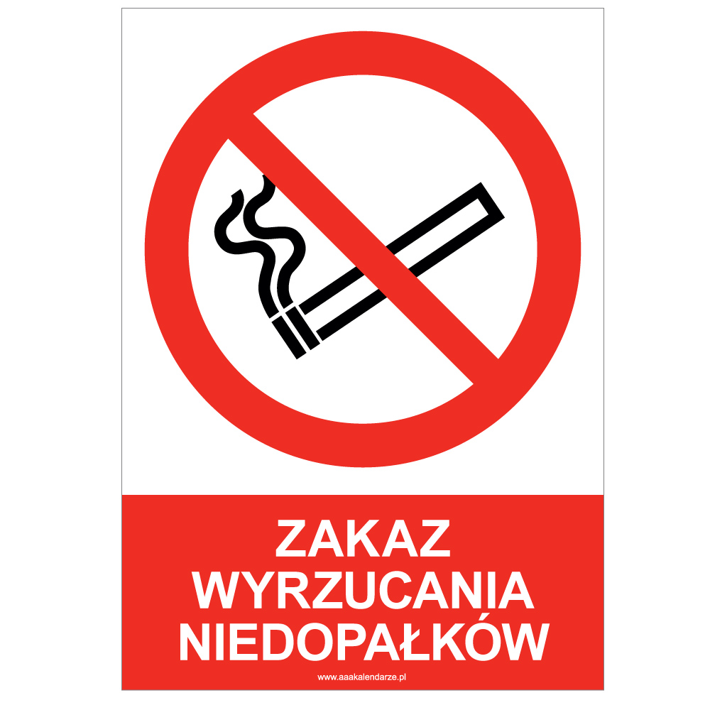 | ZAKAZ WYRZUCANIA NIEDOPAŁKÓW - znak BHP, naklejka A5 | RBT-SA5-030-PL | Samolepka | A5 (cca 148x210) | 0.89 | 1.09 |