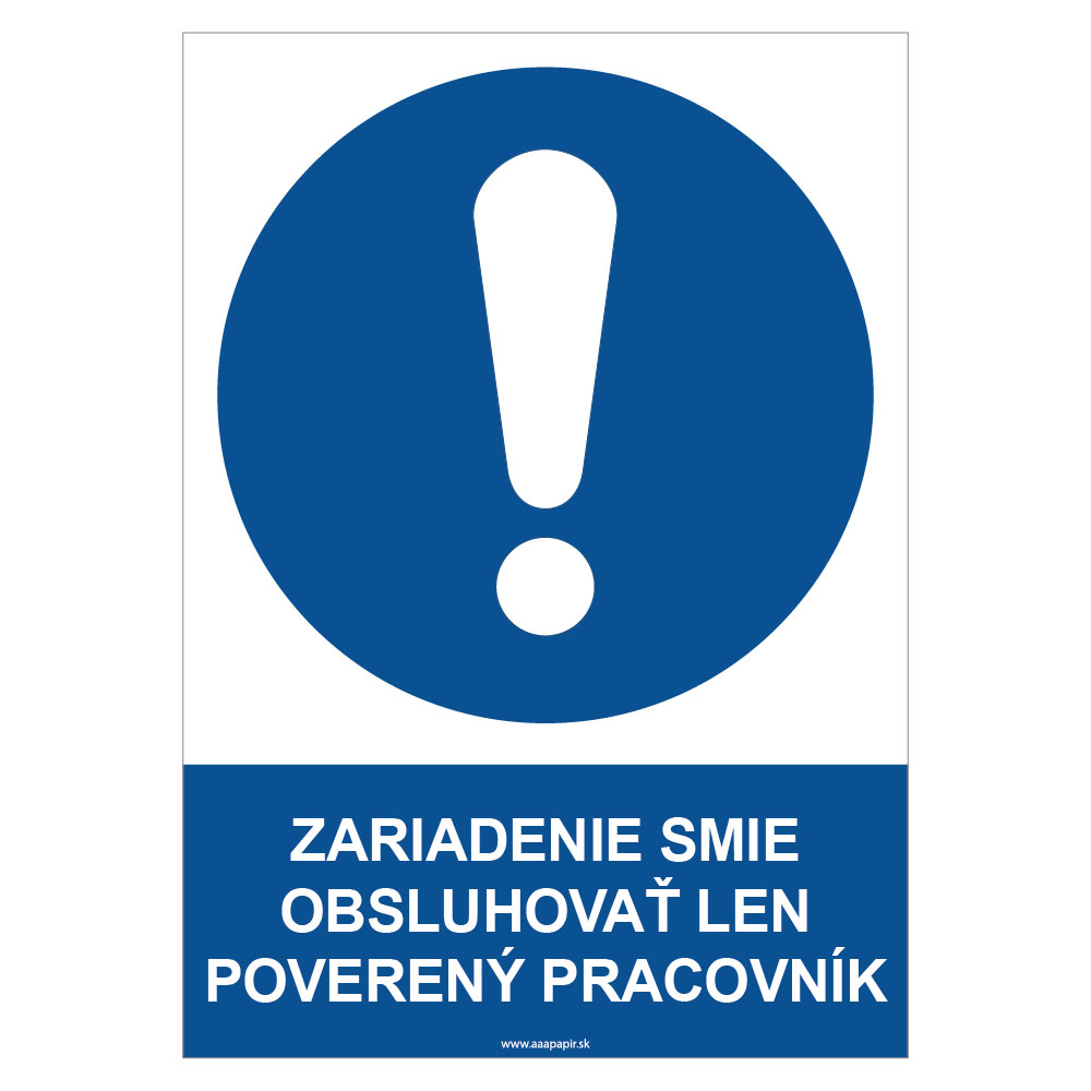 Zariadenie smie obsluhovať len poverený pracovník - bezpečnostná tabuľka, plast 2 mm - A4